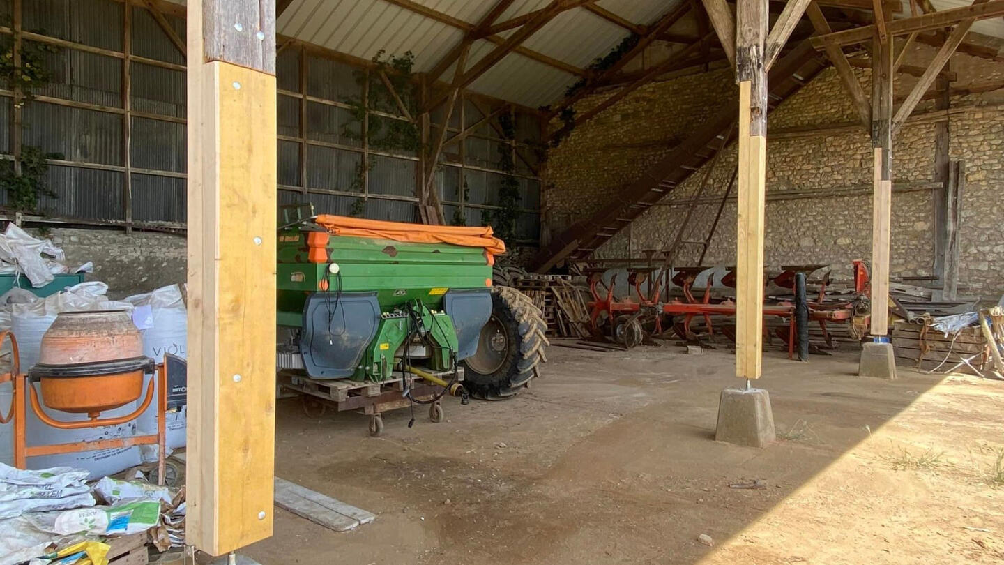 Rénovation de charpente avec des techniques ancestrales en vieux bois de chêne, les vielles bâtisses demandent parfois d’être renforcées, modifiées.